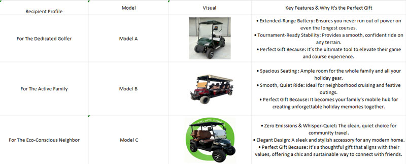 As the festive season approaches, we at oliviavehicle extend our warmest holiday greetings to you and your loved ones. Christmas is a time for joy, family, and creating special memories. This year, why not include your electric golf cart in the celebrations?