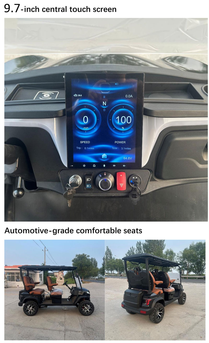 Equipped with a 72V AC system and a high-performance motor, this cart delivers reliable power with smooth acceleration. The intelligent controller ensures energy efficiency and responsive handling, making every ride effortless.