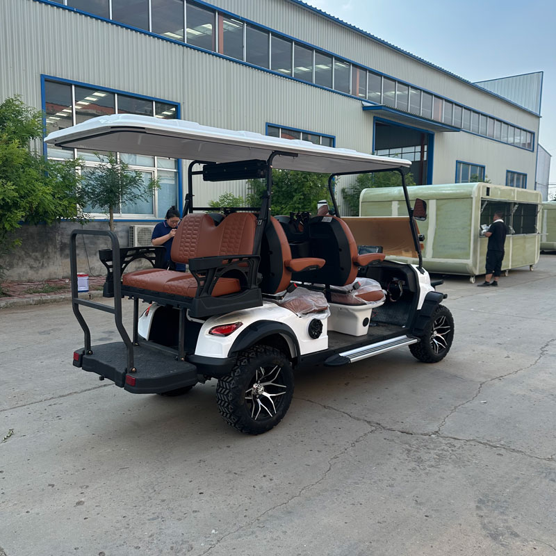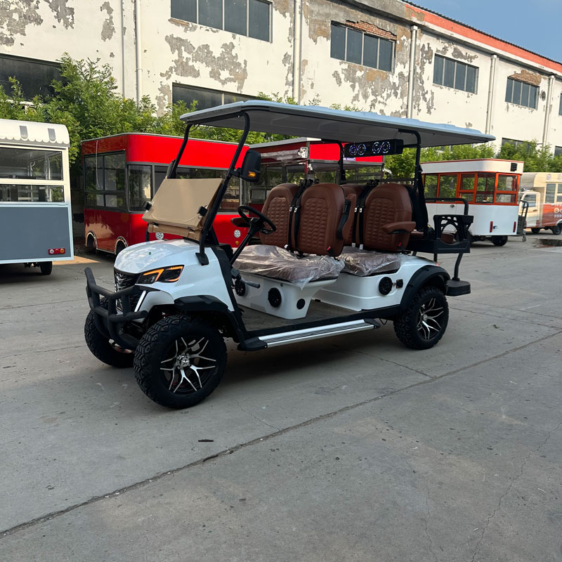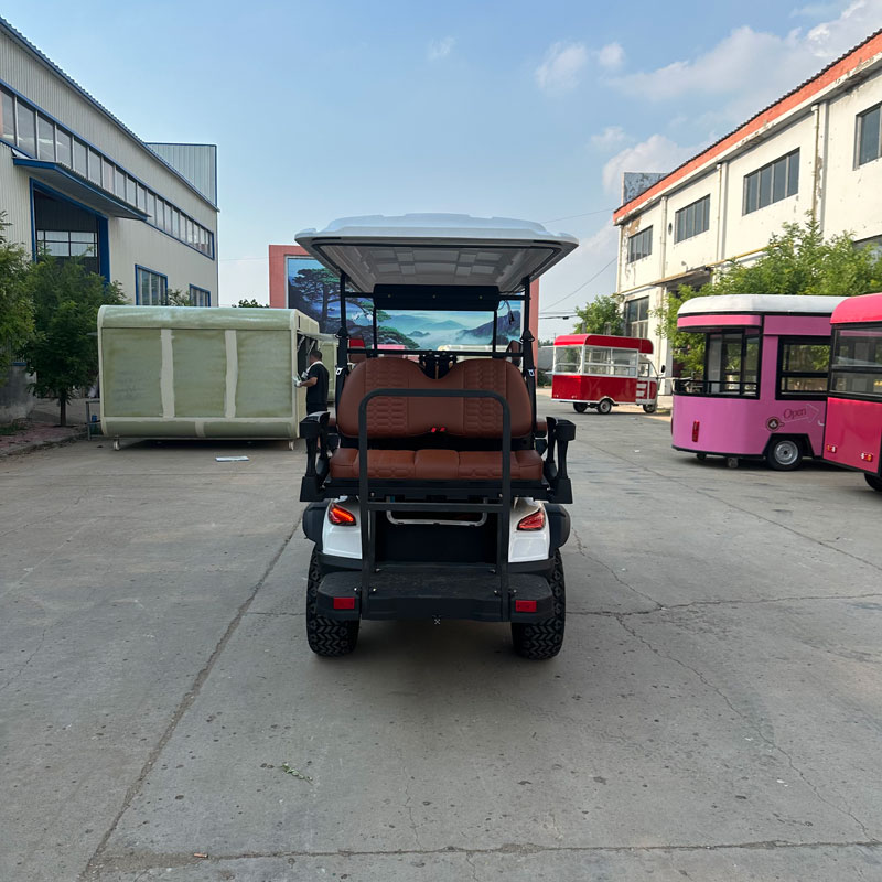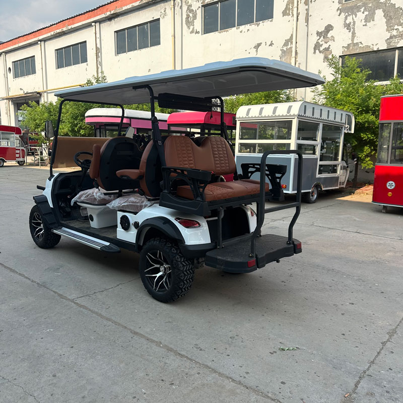 The Olivia vehicle white 4+2 Seat B-1 Electric Golf Cart combines elegant design with outstanding performance. Powered by a 72V electric system, it delivers smooth driving, excellent handling, and quiet operation. Perfect for golf courses, resorts, residential communities, and sightseeing tours.