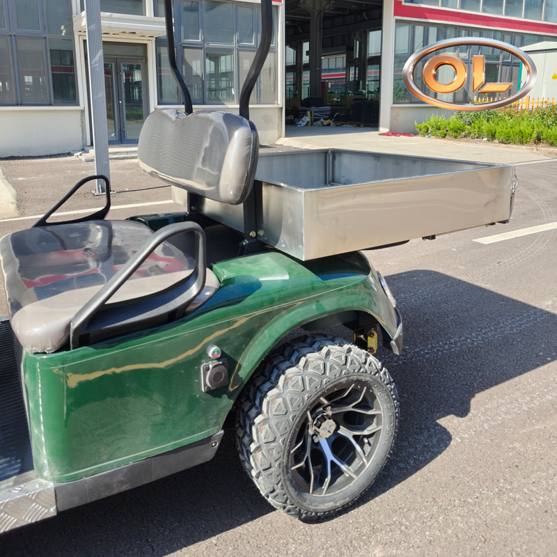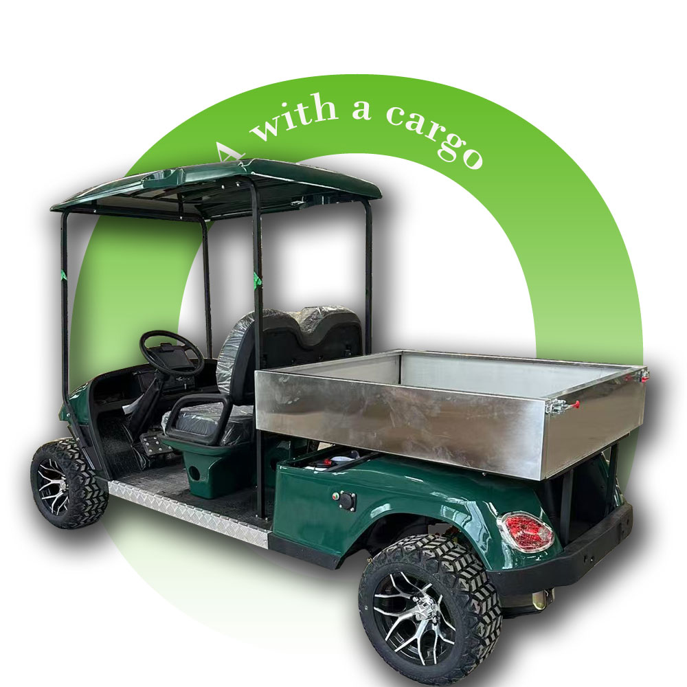 The Olivia vehicle dark green 2-Seat A Electric Golf Cart with cargo combines elegant design with outstanding performance. Powered by a 72V electric system, it delivers smooth driving, excellent handling, and quiet operation. Perfect for golf courses, resorts, residential communities, and sightseeing tours.